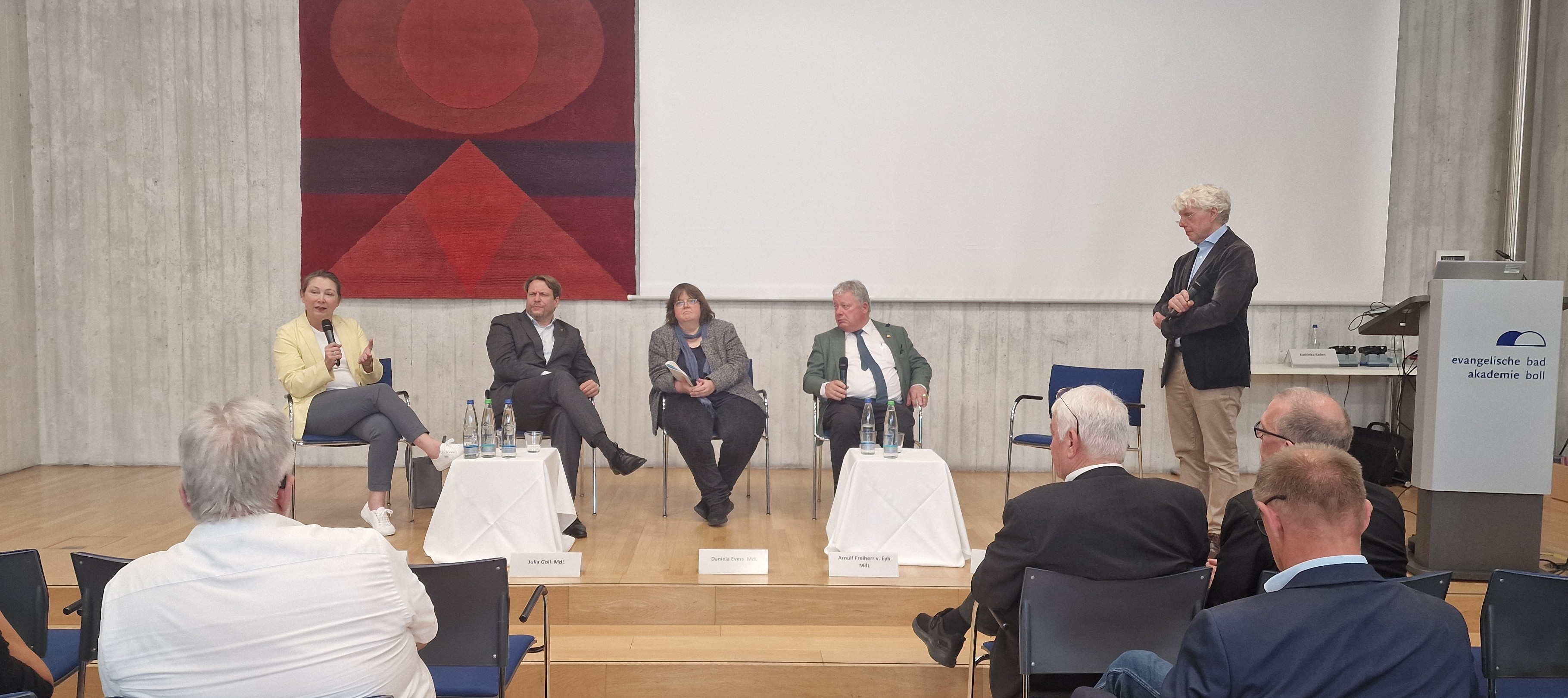 In der traditionellen Podiumsdiskussion mit den Landtagsabgeordneten Daniela Evers (Grüne), Arnulf Freiherr von Eyb (CDU), Julia Goll (FDP/DVP) und Dr. Boris Weirauch (SPD) wurden rechtspolitische Rahmenbedingungen für Wege aus der Kriminalität debattiert. Politisch wurde deutlich, dass Resozialisierung stärker als gesamtgesellschaftliche Aufgabe verstanden werden muss und nicht nur Aufgabe der Justiz und der entsprechenden Disziplinen sein kann.